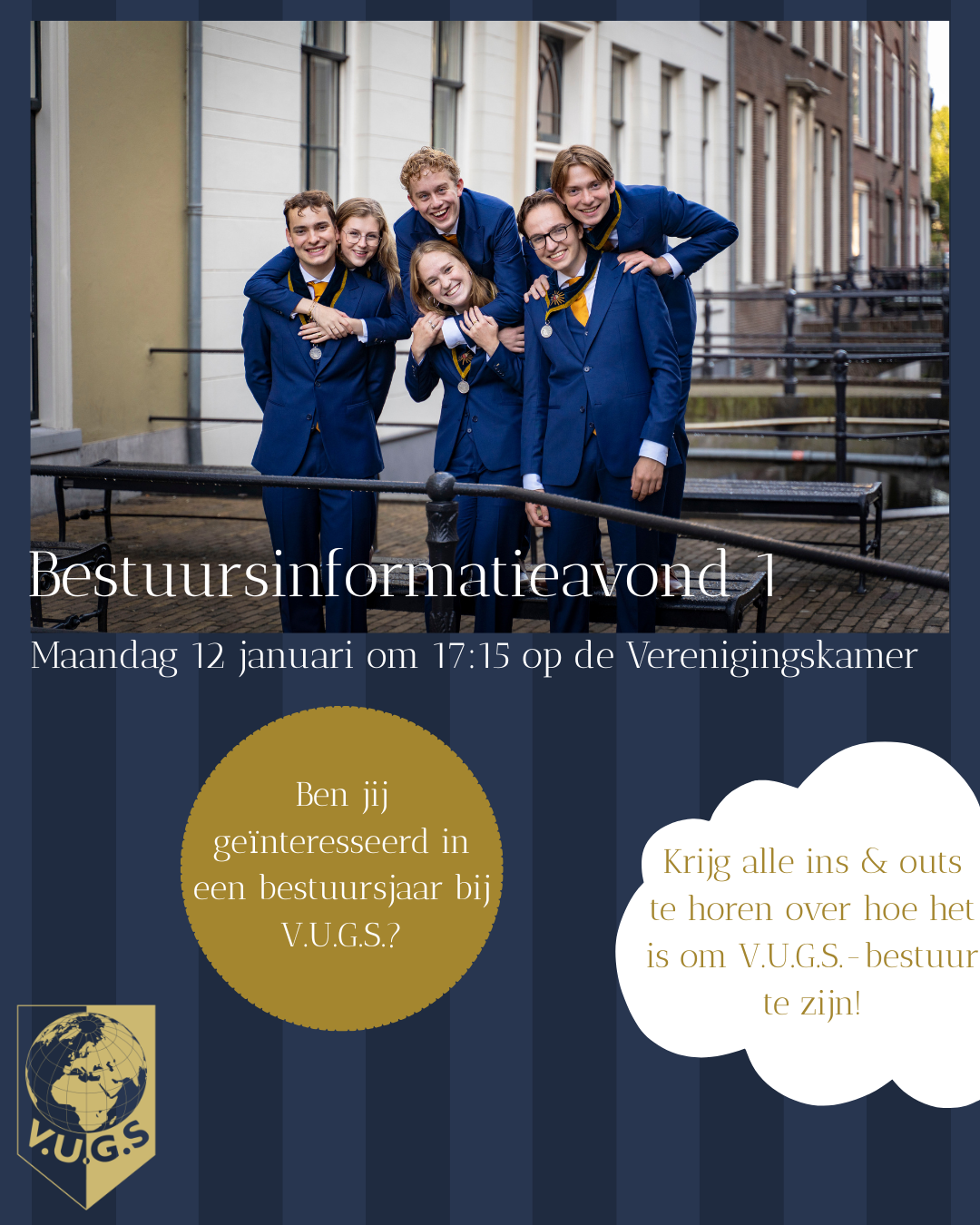 Ben jij ook zo benieuwd naar de rijke geschiedenis van V.U.G.S.? 📜✨Op 19 januari is de vrije activiteit van de archiefcommissie! 🗂️📸 Samen met jouw groep recreëer je foto’s uit het verleden van V.U.G.S. 🤩⏳Het team met de meeste correcte foto’s wint een consumptie! Als je wilt deelnemen moet je RSVPen.