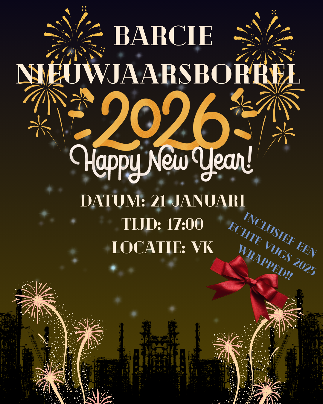 Op woensdag 21 januari is het zover, dan vindt de Barcie Nieuwjaarsborrel plaats op de VK!🌟 Om nog even terug te blikken op 2025 zal er ook een heuze V.U.G.S.-wrapped gepresenteerd worden.🤯 Dus wees erbij, want dit wil je echt niet missen‼ |
